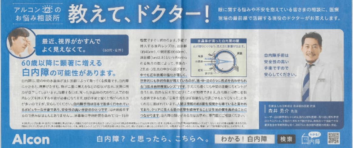 白内障術後の無水晶体眼でお困りの方がおられたら、手術により裸眼視力回復の可能性がありますので、院長に是非ご相談ください!