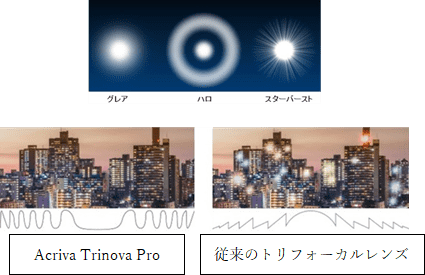 ・独自の光学設計により、従来のEDOFレンズと比較してハローグレアを抑制し、コントラストをより高めています。
